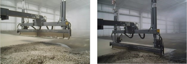 OPERATÖR JOYSTICK KOLUNU KENDÝNE ÇEKEREK BETONUN MASTARLANMASI SAÐLANIR. MASTARLAMA ESNASINDA KOTTAN YÜKSEKTE YER ALAN FAZLA BETON HELEZON TARAINDAN SAÐ TARAFA UZAKLAÞTIRILIR, VÝBRATÖR SÝSTEMÝ ÝLE DE YAKLAÞIK 20 CM DERÝNLÝÐE KADAR VÝBRASYON YAPILARAK BETONUN SIKIÞMASI SAÐLANIR. DAHA SONRA MANUEL OLARAK MASTAR ÇEKÝLEN YÜZEYÝN KOTU ARA ARA KONTROL EDÝLÝR. BU KOT TARAMALARINDA KOT HATASININ +/- 2 mm YÝ GEÇMEDÝÐÝ GÖRÜLÜR.